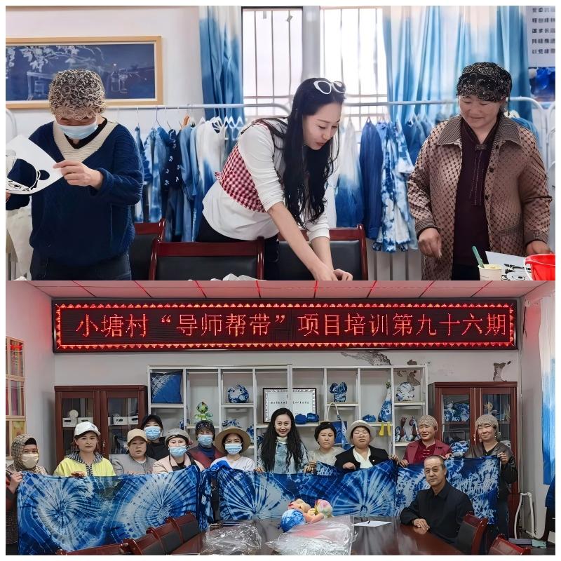 驻村以来,王语晗所在的工作队始终以 “传艺富民”为使命,从非遗传承到产业培育,从技能培训到销路拓展,在小塘村的院落间播撒非遗的种子。王语晗来自共青团银川市委青少年宫,2021年7月,她响应组织号召成为小塘村驻村工作队员。从青少年教育岗位到乡村振兴一线,她和队友们一同在染缸与针线间书写了一个个以艺兴村、以技富民的故事。