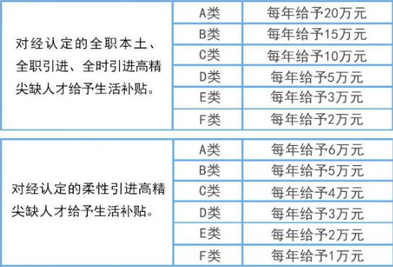 配偶就业:引进高精尖缺人才配偶已就业的按照对等原则协调解决配偶工作;未就业的可享受每人每年2万元补贴,最长补贴3年。
