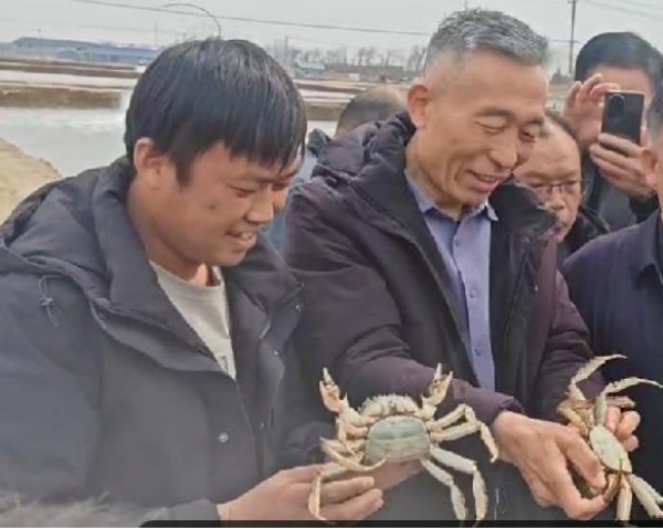 中国水产科学研究院淡水渔业研究中心实地指导大闸蟹养殖工作。