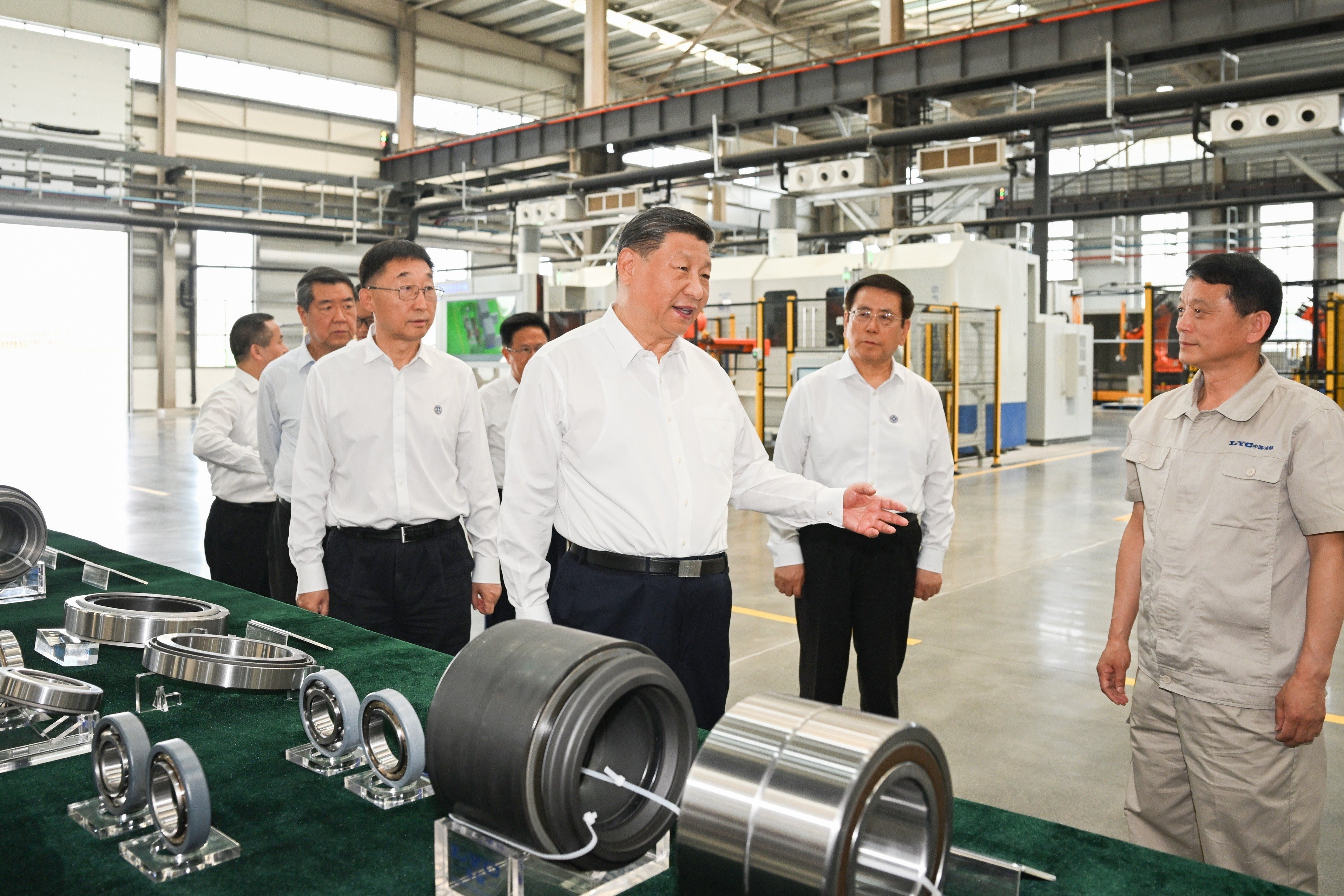 19日下午,习近平首先来到洛阳轴承集团股份有限公司考察。该公司前身为“一五”期间建成的洛阳轴承厂。在智能工厂,习近平了解企业发展历程,听取不同类型轴承产品用途和性能介绍,走近生产线察看生产流程。他对围拢过来的企业职工说,制造业是国民经济的重要支柱,推进中国式现代化必须保持制造业优势合理比重。现代制造业离不开科技赋能,要大力加强技术攻关,走自主创新的发展路子。他勉励职工发扬主人翁精神,在企业发展中奋发有为、多作贡献。