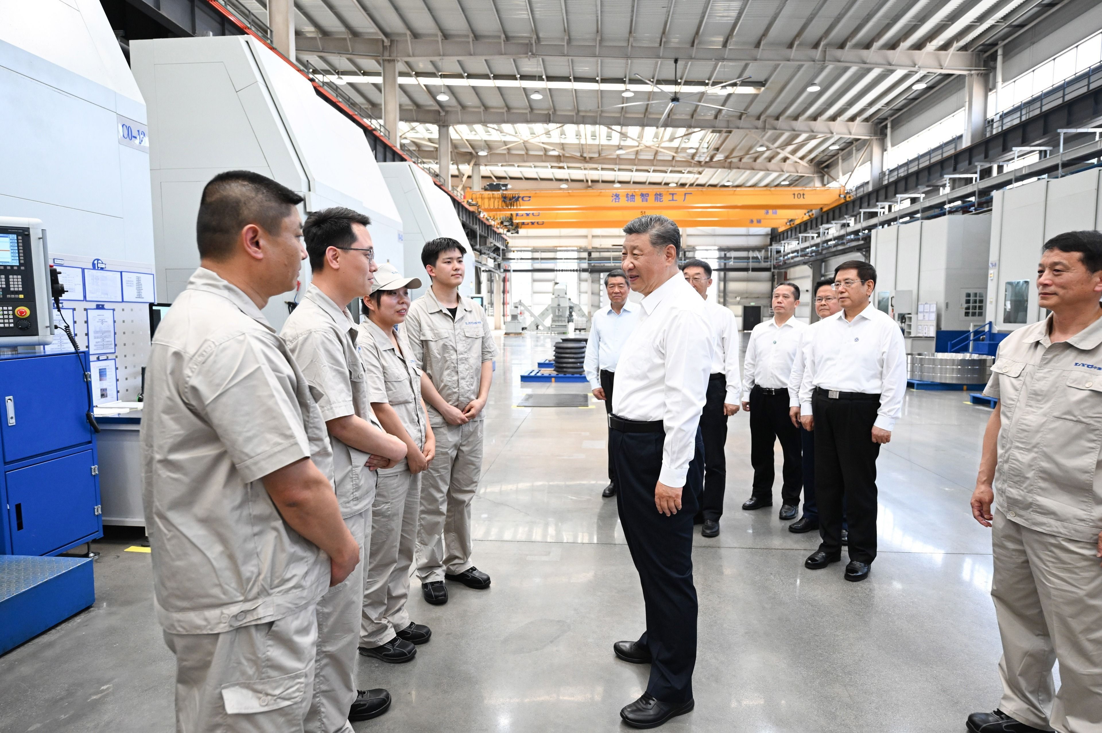 5月19日至20日,中共中央总书记、国家主席、中央军委主席习近平在河南考察。这是19日下午,习近平在洛阳轴承集团股份有限公司智能工厂考察。新华社记者 谢环驰 摄